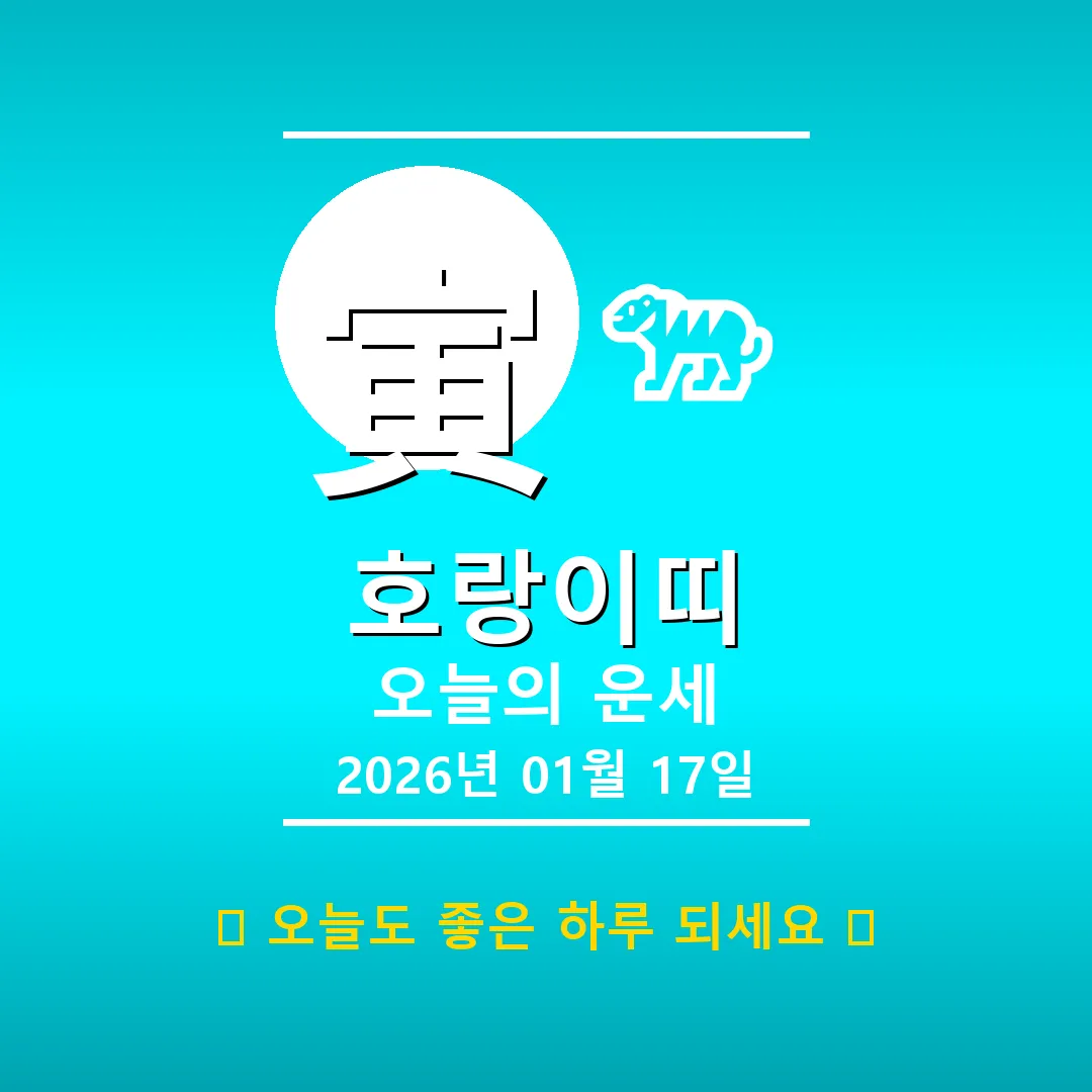 안녕하세요, 호랑이띠 여러분! 2026년 1월 17일, 정축(丁丑)년 계축(癸丑)월 갑자(甲子)일, 오늘의 운세입니다. 오늘은 갑목(甲木) 일주를 가지신 호랑이띠 분들에게 특히 중요한 날입니다. 큰 나무와 같은 갑목의 기운이 자칫 차가운 겨울 기운에 갇힐 수 있으니, 따뜻한 마음과 긍정적인 에너지로 하루를 시작해 보세요!