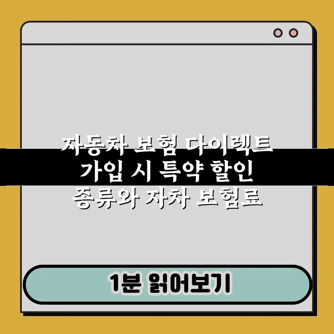 자동차 보험 다이렉트 가입 시 특약 할인 종류와 자차 보험료 절감법을 활용하면 보험료 부담을 크게 줄일 수 있어요. 주행거리, 블랙박스, 안전운전 등 다양한 특약 혜택을 꼼꼼히 살펴보고, 여러 보험사 견적을 비교하는 것이 핵심이에요. 지금 바로 나에게 맞는 최적의 조건을 찾아보세요. 현명한 선택으로 보험료를 절약할 수 있을 거예요!