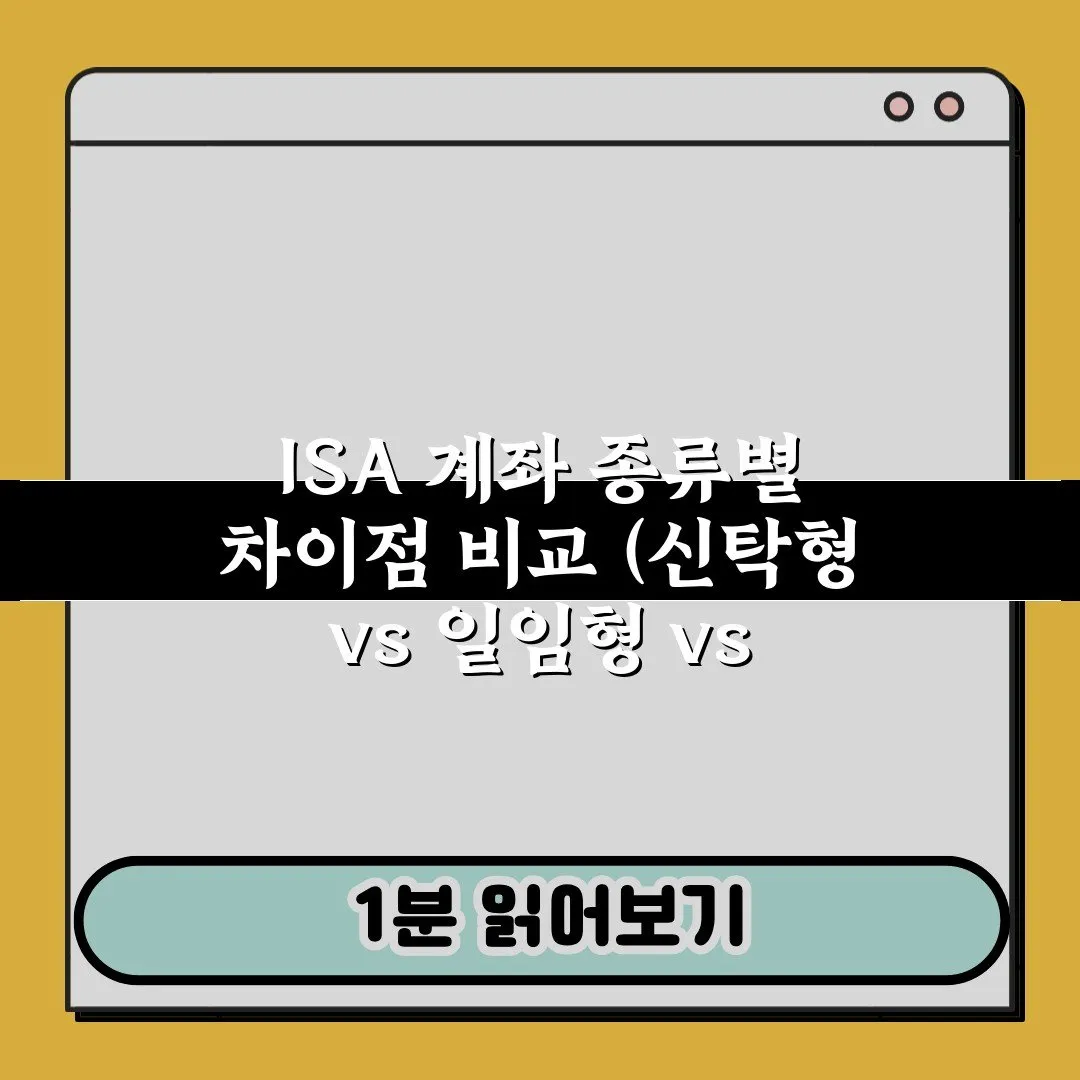 자신에게 맞는 계좌 선택이 중요해요. ISA 계좌 종류별 차이점 비교 (신탁형 vs 일임형 vs 중개형)를 통해 최적의 유형을 찾아보세요.