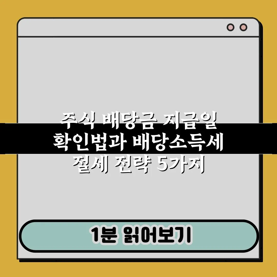 주식 배당금 지급일 확인법과 배당소득세 절세 전략 5가지