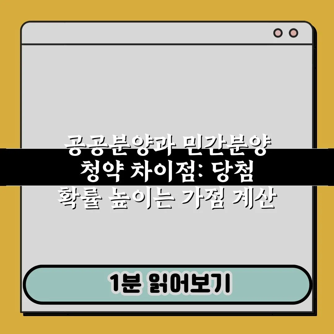 공공/민간분양 청약의 핵심 차이점과 당첨 확률을 높이는 가점 계산법을 완벽 가이드합니다. 당신의 내 집 마련 꿈, 지금 바로 시작하세요!