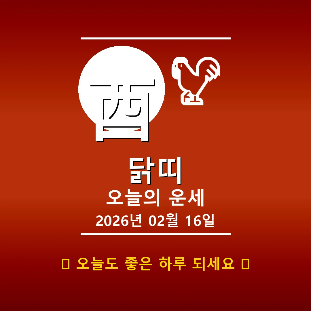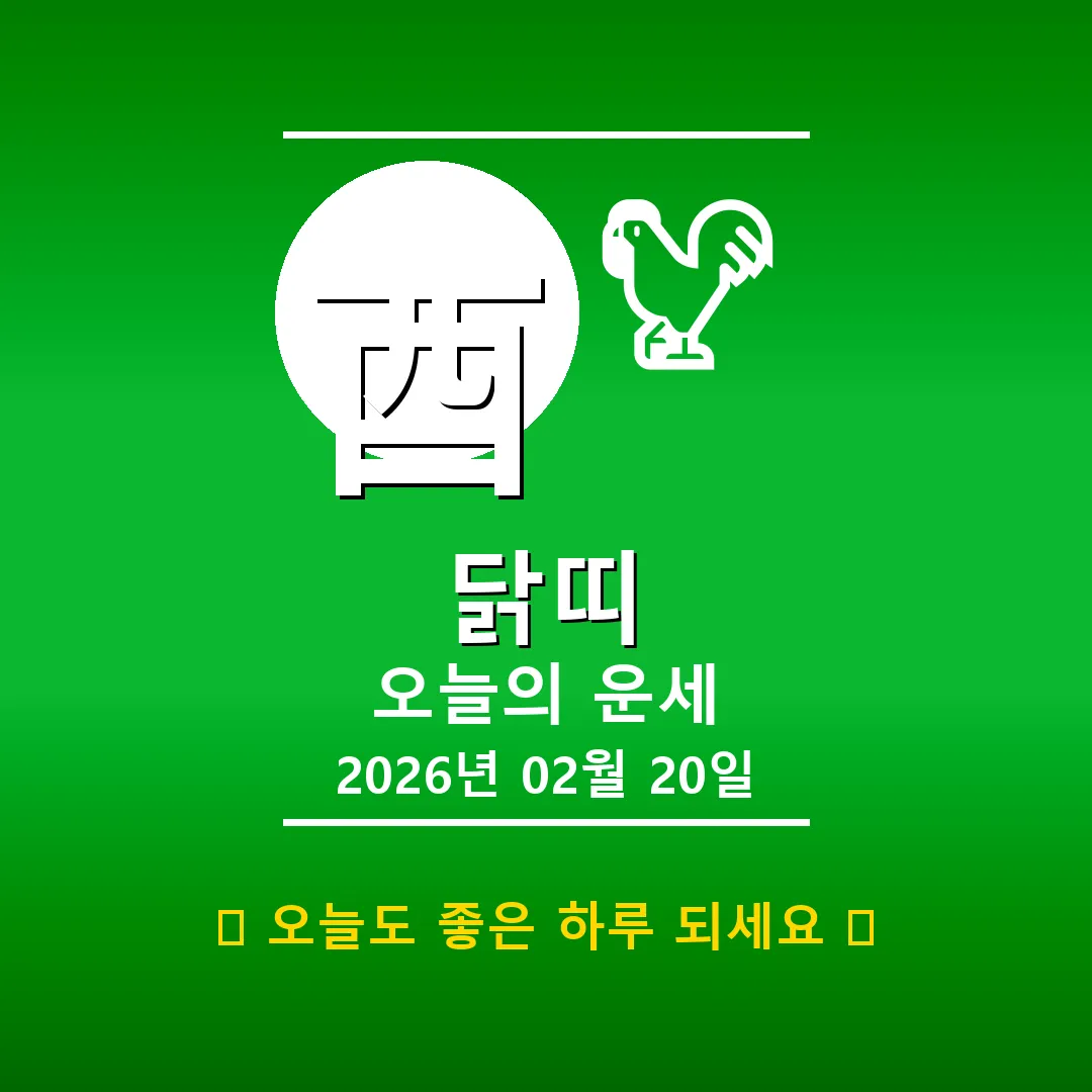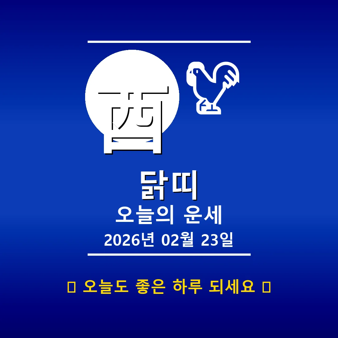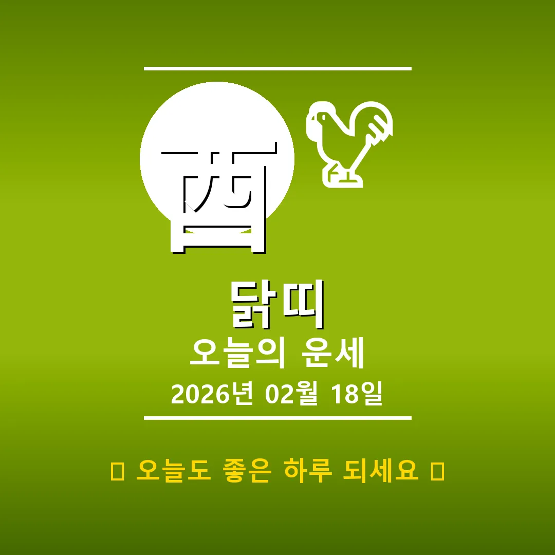 🐓 닭띠 해당 연생 : 1909년, 1921년, 1933년, 1945년, 1957년, 1969년, 1981년, 1993년, 2005년, 2017년생 2026년 2월 24일, 닭띠 여러분 안녕하세요! 오늘은 기묘일(己卯日)로, 닭띠 여러분에게 안정과 성장의 기운이 감도는 날입니다. 酉(유, 닭)는 오행상 金(금)에 해당하며, 이날은 특히 차분하게 자신을 돌아보고 미래를 계획하기 좋은 하루가 될 거예요. 오늘 하루, 긍정적인 마음으로 시작해볼까요? 📊 오늘의 닭띠 운세 … Read more