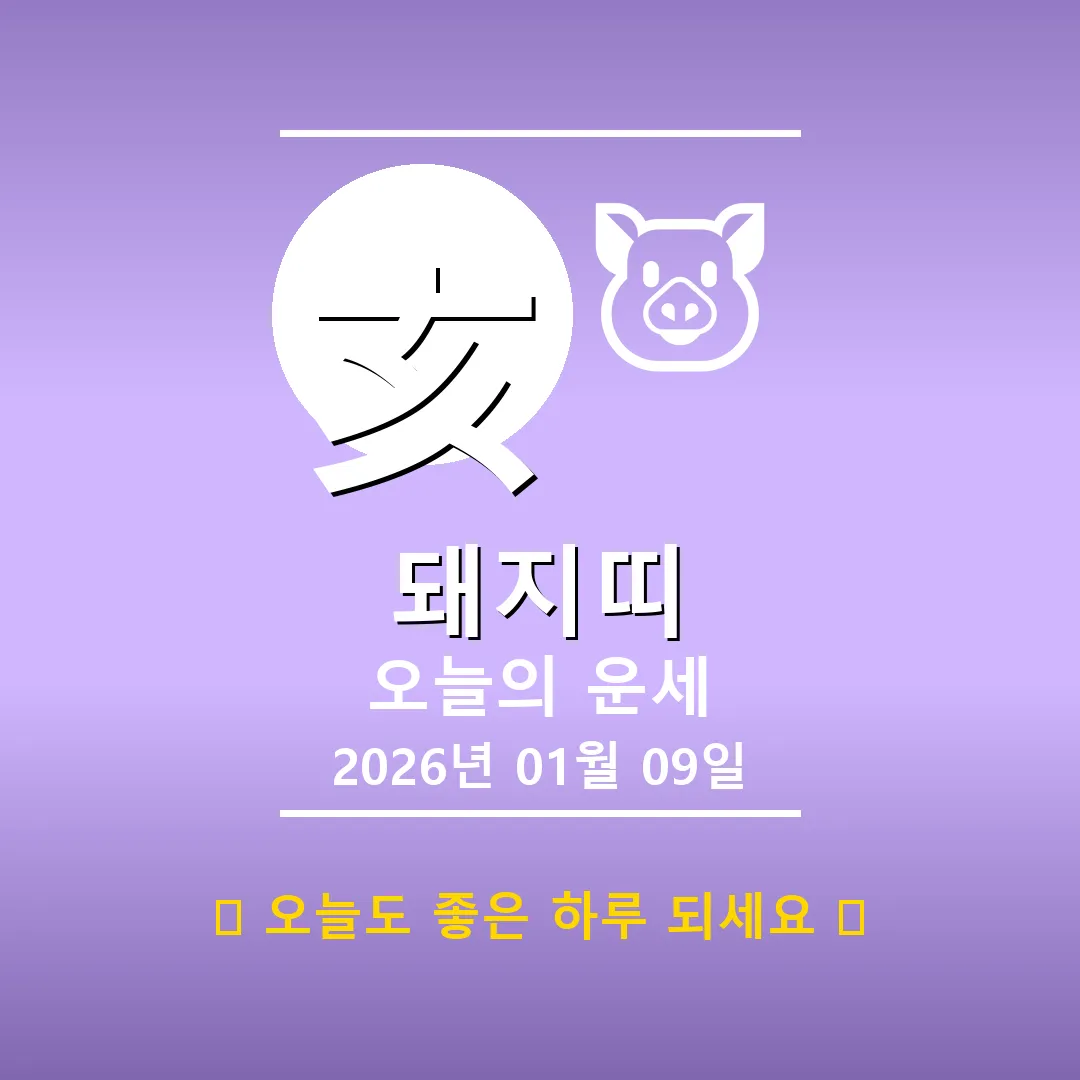 🐷 돼지띠 해당 연생 : 1911년, 1923년, 1935년, 1947년, 1959년, 1971년, 1983년, 1995년, 2007년, 2019년생 오늘 돼지띠 여러분, 2026년 1월 19일은 계축일(癸丑日)로, 차분함 속에 새로운 시작을 준비하는 하루가 되겠네요! 여러분의 사주를 보니 토(土) 기운이 강하고, 불(火) 기운도 어느 정도 있어 안정적인 기반 위에 열정을 더할 수 있는 날입니다. 다만, 백호대살(白虎大殺)의 기운이 있으니 건강과 안전에 유의하는 … Read more