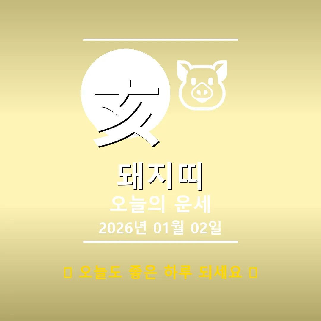 🐷 돼지띠 해당 연생: 1911년, 1923년, 1935년, 1947년, 1959년, 1971년, 1983년, 1995년, 2007년, 2019년생 안녕하세요, 돼지띠 여러분! 2026년 1월 2일, 드디어 새해가 밝았습니다. 오늘은 사주를 쫙 펼쳐보니, 여러분의 일주인 丙申(병신)의 기운이 반짝이는 날이네요! 丙(병)은 태양처럼 뜨거운 에너지를, 申(신)은 재주 많고 영리한 원숭이를 상징합니다. 마치 활활 타오르는 불꽃 원숭이 같다고 할까요? 오늘은 여러분의 지혜와 열정이 빛을 … Read more