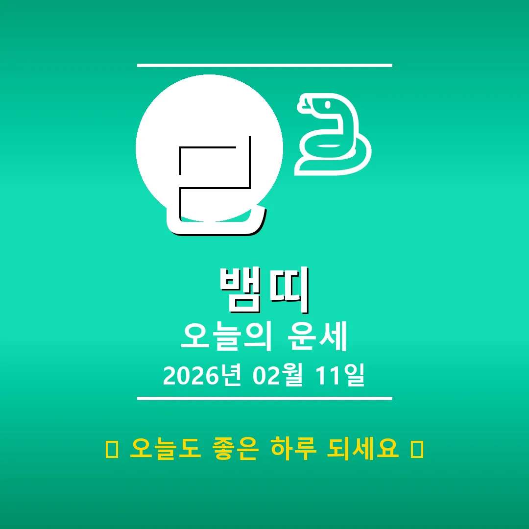 오늘의운세 뱀띠 시험운 취업운 애정운 사업운 학업운 2026년 2월 11일