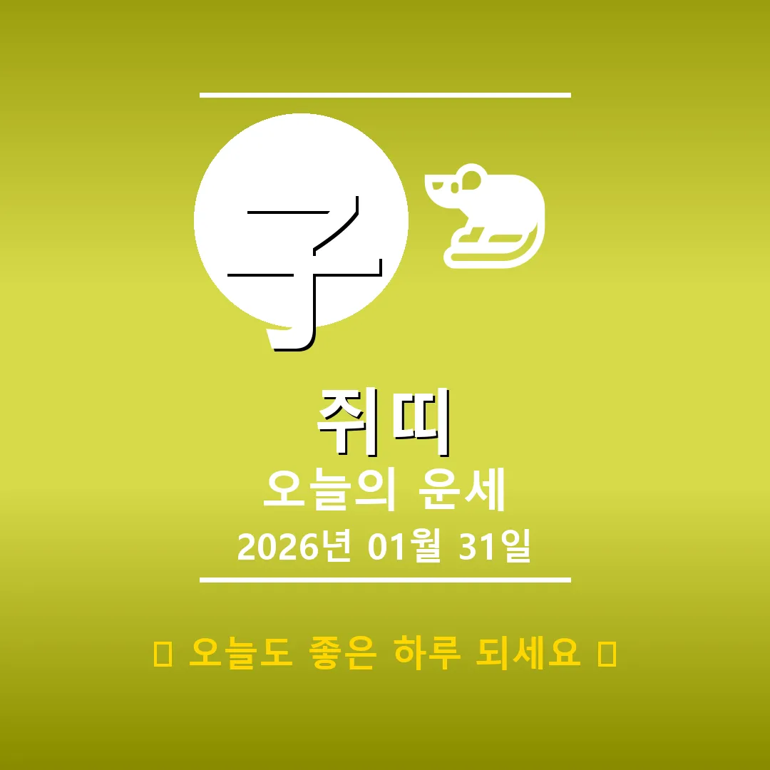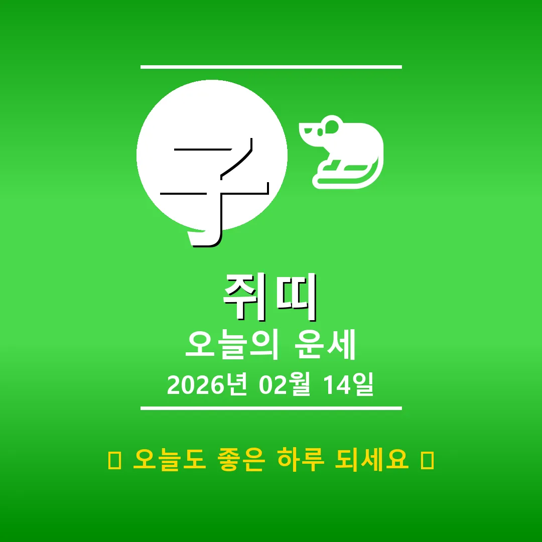 🐀 쥐띠 해당 연생 : 1900년, 1912년, 1924년, 1936년, 1948년, 1960년, 1972년, 1984년, 1996년, 2008년, 2020년생 안녕하세요, 쥐띠 여러분! 2026년 2월 14일, 오늘은 여러분의 숨겨진 잠재력을 발휘할 수 있는 멋진 날이 될 거예요. 사주를 펼쳐보니, 일주가 신사(辛巳)로 섬세함과 지혜가 빛나는 하루입니다. 다만, 사주에 토(土) 기운이 부족하니 균형을 맞추는 노력이 필요하겠네요. 오늘 하루, 긍정적인 마음으로 시작하면 … Read more