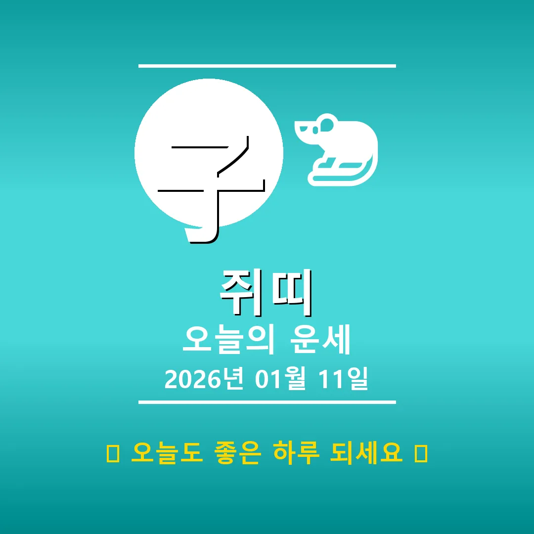 오늘의운세 쥐띠 애정운 총운 학업운 시험운 직장운 2026년 1월 11일