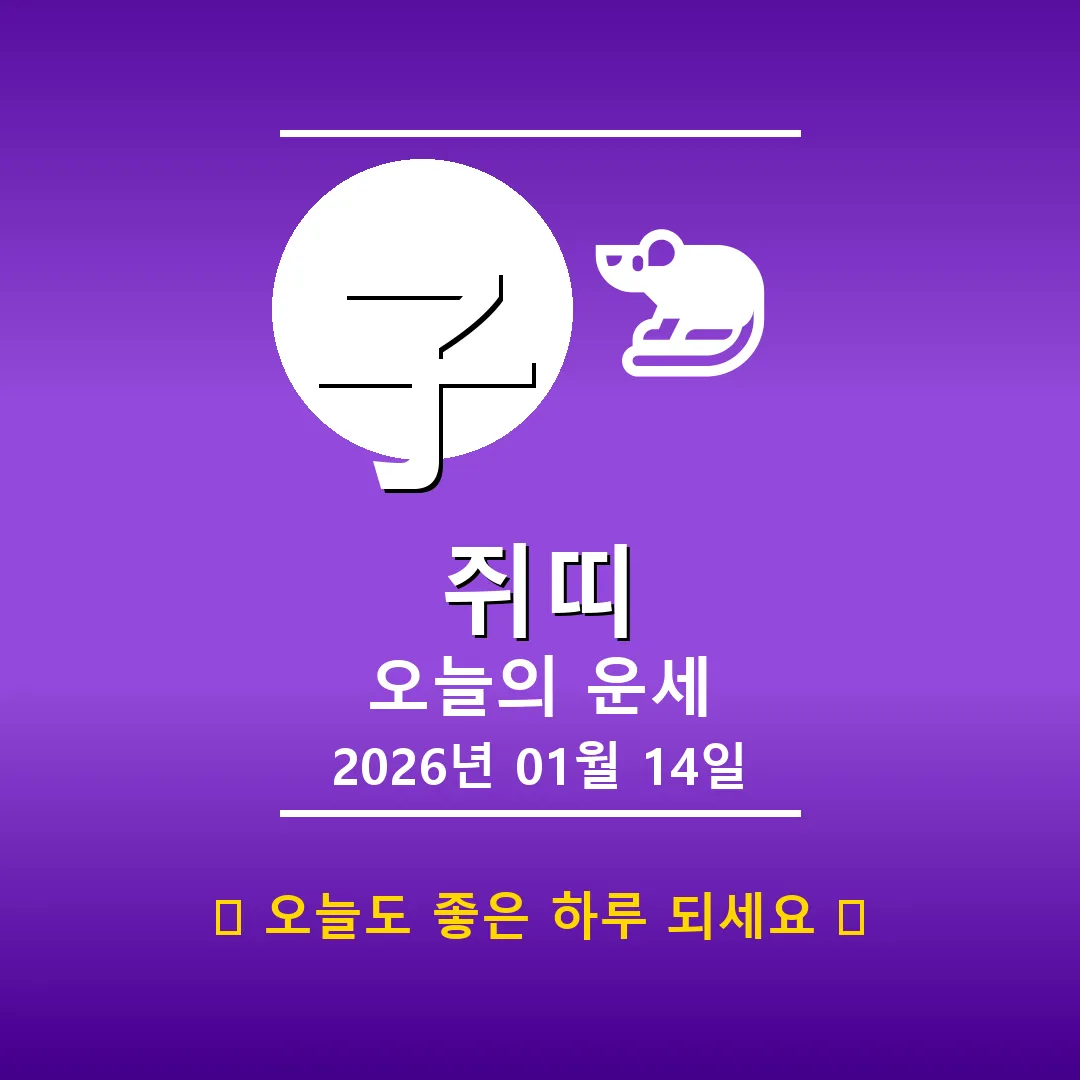 오늘의운세 쥐띠 건강운 결혼운 사업운 시험운 취업운 2026년 1월 14일
