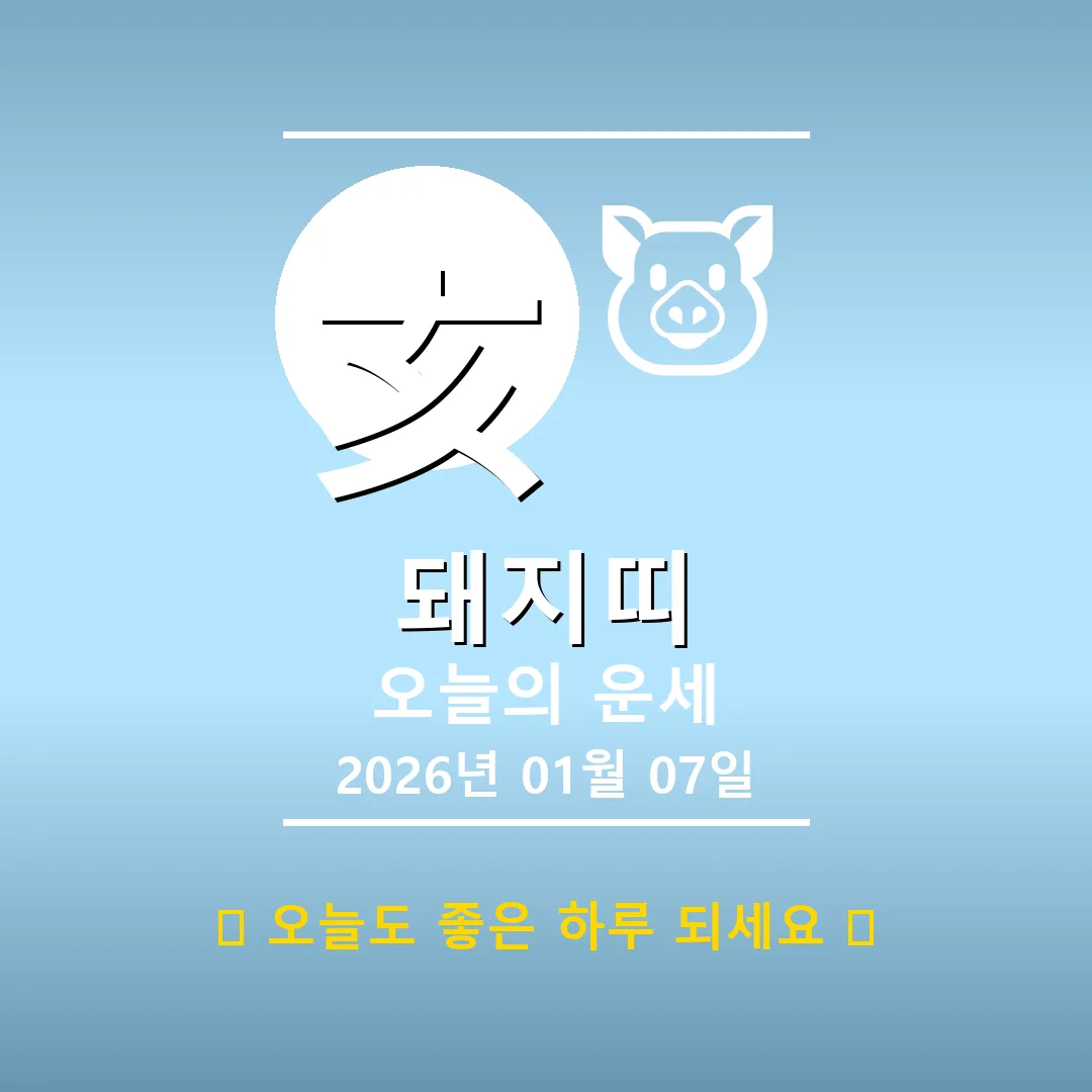 오늘의운세 돼지띠 재물운 건강운 총운 학업운 결혼운 2026년 1월 7일