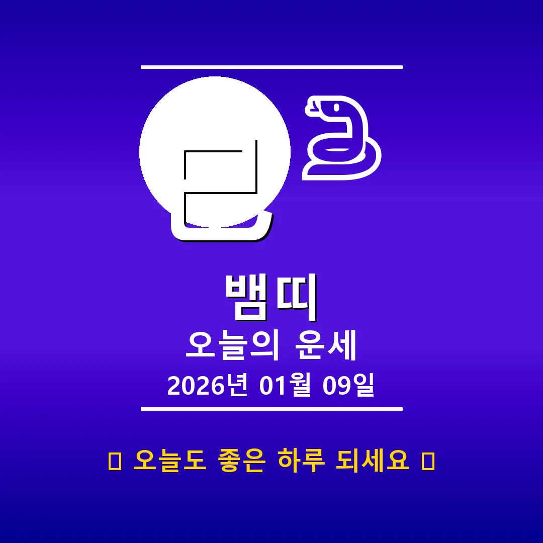 🐷 돼지띠 해당 연생: 1911년, 1923년, 1935년, 1947년, 1959년, 1971년, 1983년, 1995년, 2007년, 2019년생 오늘 돼지띠 여러분, 2026년 1월 9일은 사주상 계묘일(癸卯日)로 섬세함과 부드러움이 돋보이는 날입니다. 하지만 사주 전체를 보면 토(土) 기운이 강하여 다소 답답함을 느낄 수도 있겠네요. 오늘은 융통성을 발휘하고 주변 사람들과의 소통에 신경 쓰는 것이 중요합니다. 특히, 천살의 영향으로 예상치 못한 어려움이 발생할 … Read more