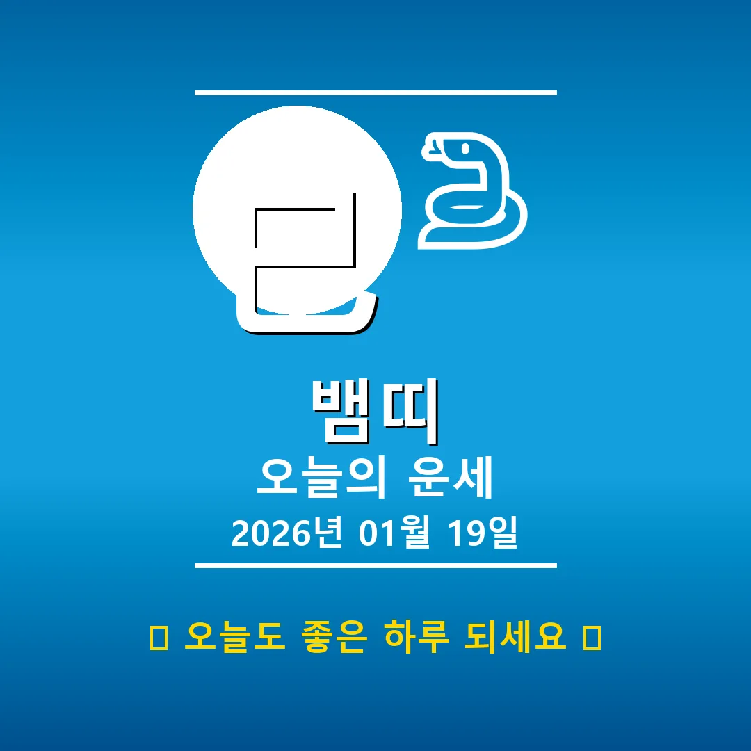 오늘의운세 뱀띠 시험운 재물운 학업운 결혼운 건강운 2026년 1월 19일