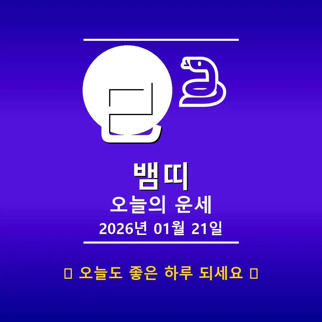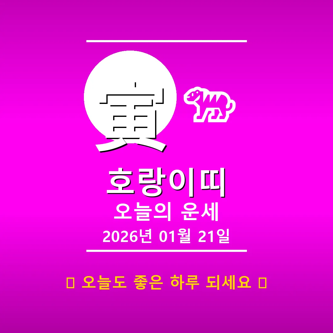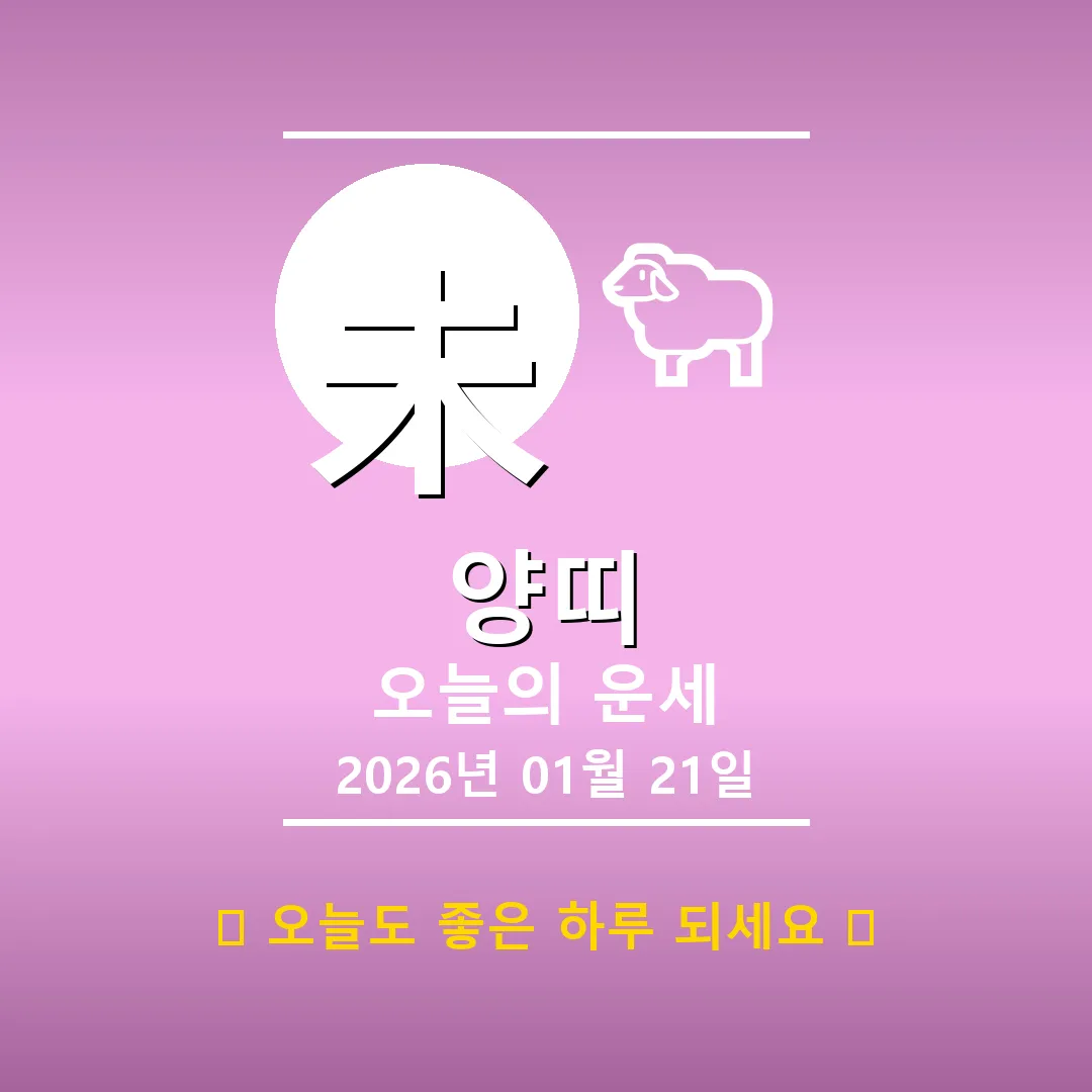 🐷 돼지띠 해당 연생: 1911년, 1923년, 1935년, 1947년, 1959년, 1971년, 1983년, 1995년, 2007년, 2019년생 안녕하세요, 돼지띠 여러분! 2026년 1월 21일, 오늘 하루는 어떤 기운이 감돌고 있을까요? 사주를 살펴보니, 일주가 乙卯(을묘)로, 부드러운 풀잎처럼 섬세한 감각이 돋보이는 날이네요. 하지만 주변의 火(화) 기운도 만만치 않으니, 감정 조절에 조금 더 신경 쓰는 것이 좋겠습니다. 📊 오늘의 돼지띠 운세 요약 … Read more