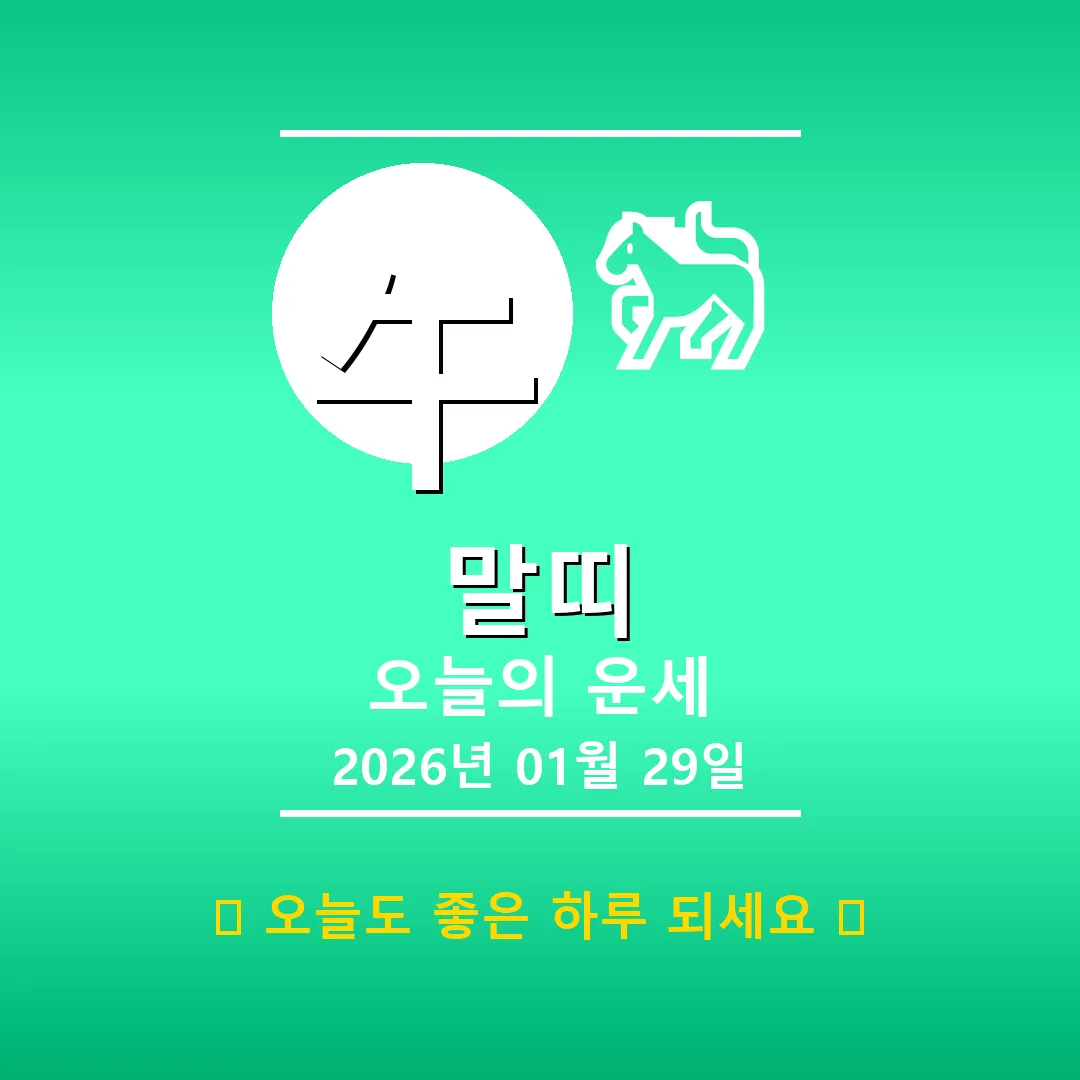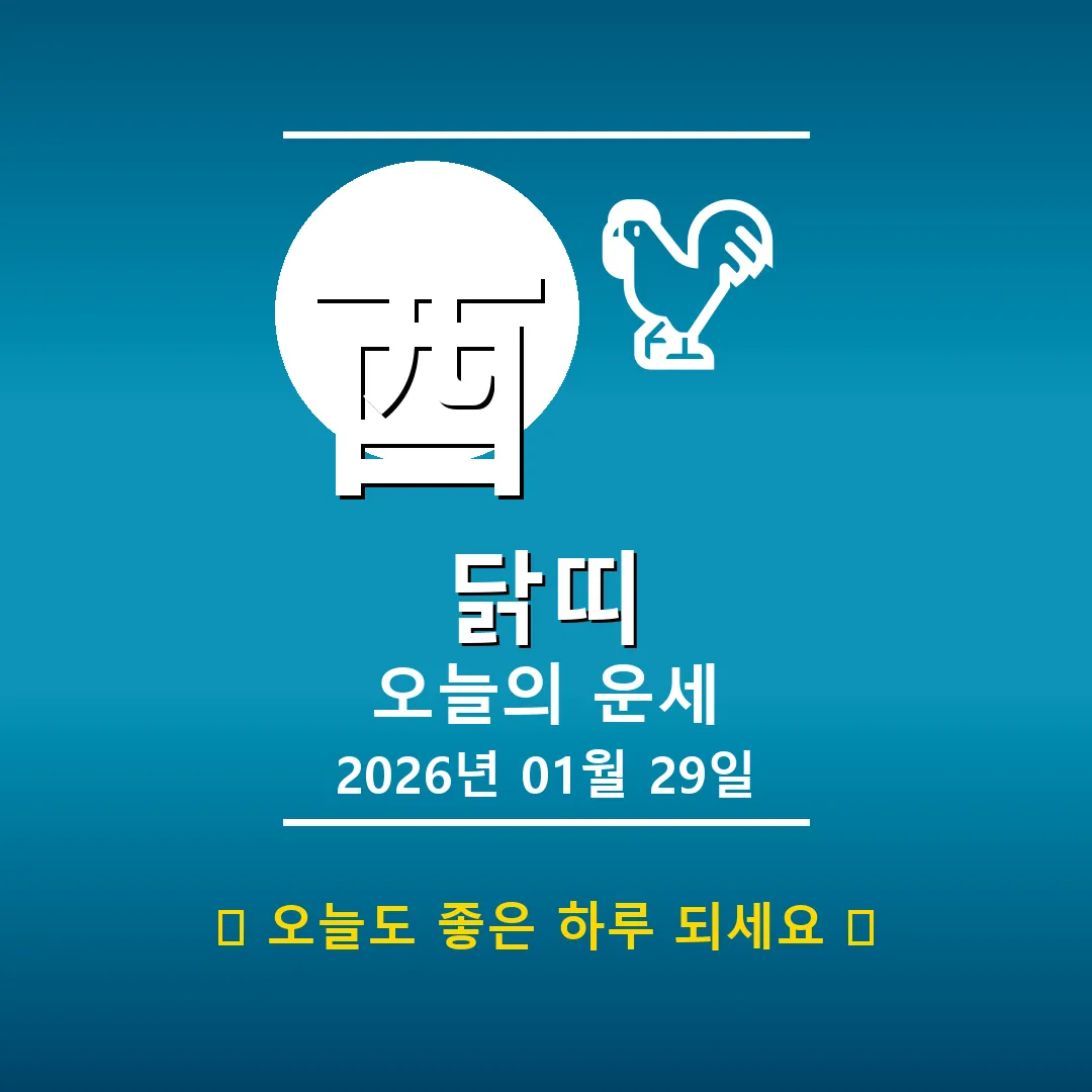🐕 개띠 해당 연생 : 1910년, 1922년, 1934년, 1946년, 1958년, 1970년, 1982년, 1994년, 2006년, 2018년생 오늘 개띠 여러분, 2026년 1월 29일은 戊午日(무오일)로 뜨거운 기운이 감도는 하루입니다! 사주를 펼쳐보니, 전반적으로 土(토) 기운이 강하고 火(화) 기운이 이를 돕고 있네요. 안정적인 기운이 감돌지만, 한편으로는 다소 답답하게 느껴질 수도 있겠습니다. 하지만 너무 걱정 마세요! 긍정적인 에너지를 불어넣어 줄 행운의 … Read more