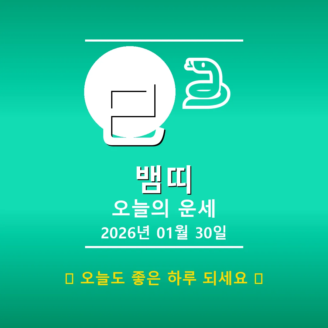 오늘의운세 뱀띠 사업운 애정운 취업운 시험운 총운 2026년 1월 30일