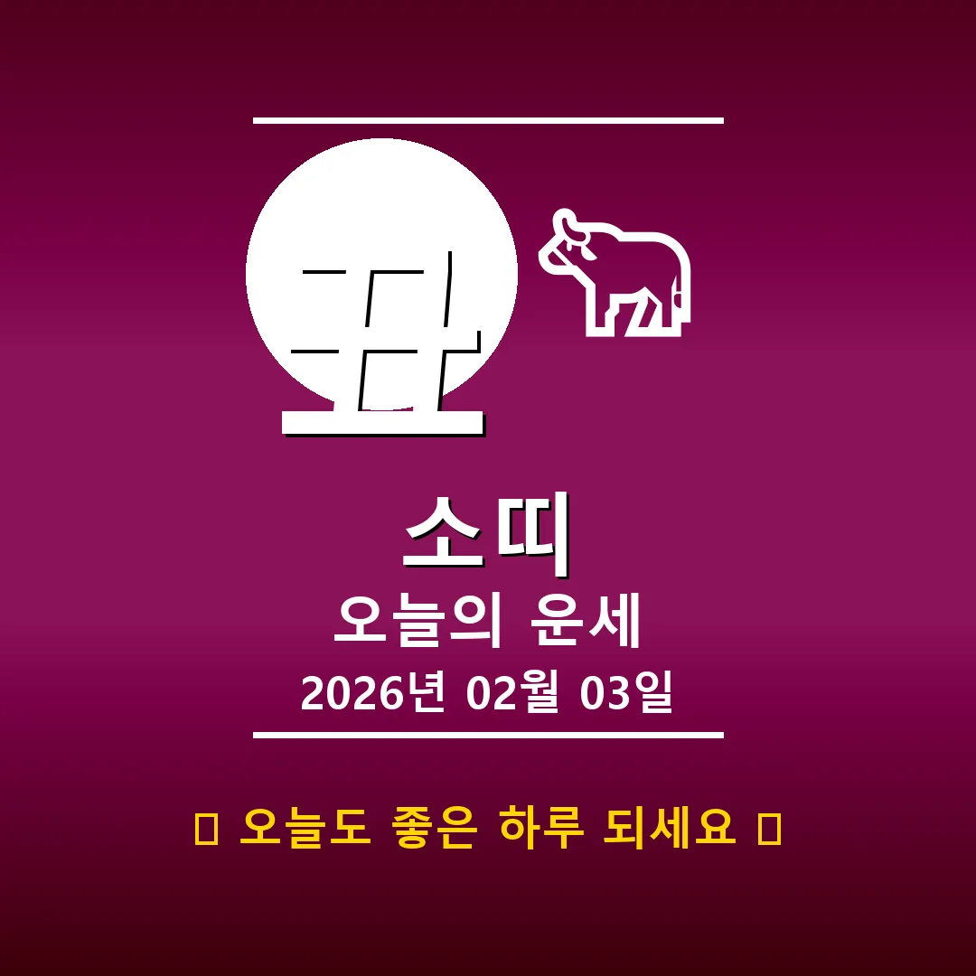 🐷 돼지띠 해당 연생: 1911년, 1923년, 1935년, 1947년, 1959년, 1971년, 1983년, 1995년, 2007년, 2019년생 오늘 돼지띠 여러분, 2026년 2월 3일은 무진(戊辰)일주의 기운이 감도는 날입니다. 흙(土)의 기운이 강하게 느껴지는 하루인데요. 사주 팔자를 보니 토(土)가 무려 5개나 되고, 화(火) 기운도 2개나 있네요! 안정적인 하루가 예상되지만, 수(水)와 목(木) 기운이 부족하니 균형을 맞추는 노력이 필요하겠어요. 📊 오늘의 돼지띠 운세 … Read more
