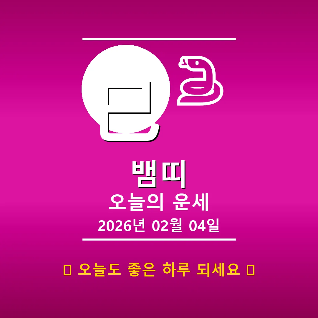 🐷 돼지띠 해당 연생 : 1911년, 1923년, 1935년, 1947년, 1959년, 1971년, 1983년, 1995년, 2007년, 2019년생 안녕하세요, 돼지띠 여러분! 2026년 2월 4일, 오늘은 亥(해)의 기운을 가진 여러분에게 丙午(병오)의 활활 타오르는 듯한 에너지가 함께하는 날입니다. 사주를 보니 일주가 己巳(기사)로, 겉으로는 부드러워 보이지만 속으로는 강인함이 숨겨져 있는 형국이네요. 오늘은 이 기운을 잘 활용해서 원하는 바를 이루도록 노력해 보세요! … Read more
