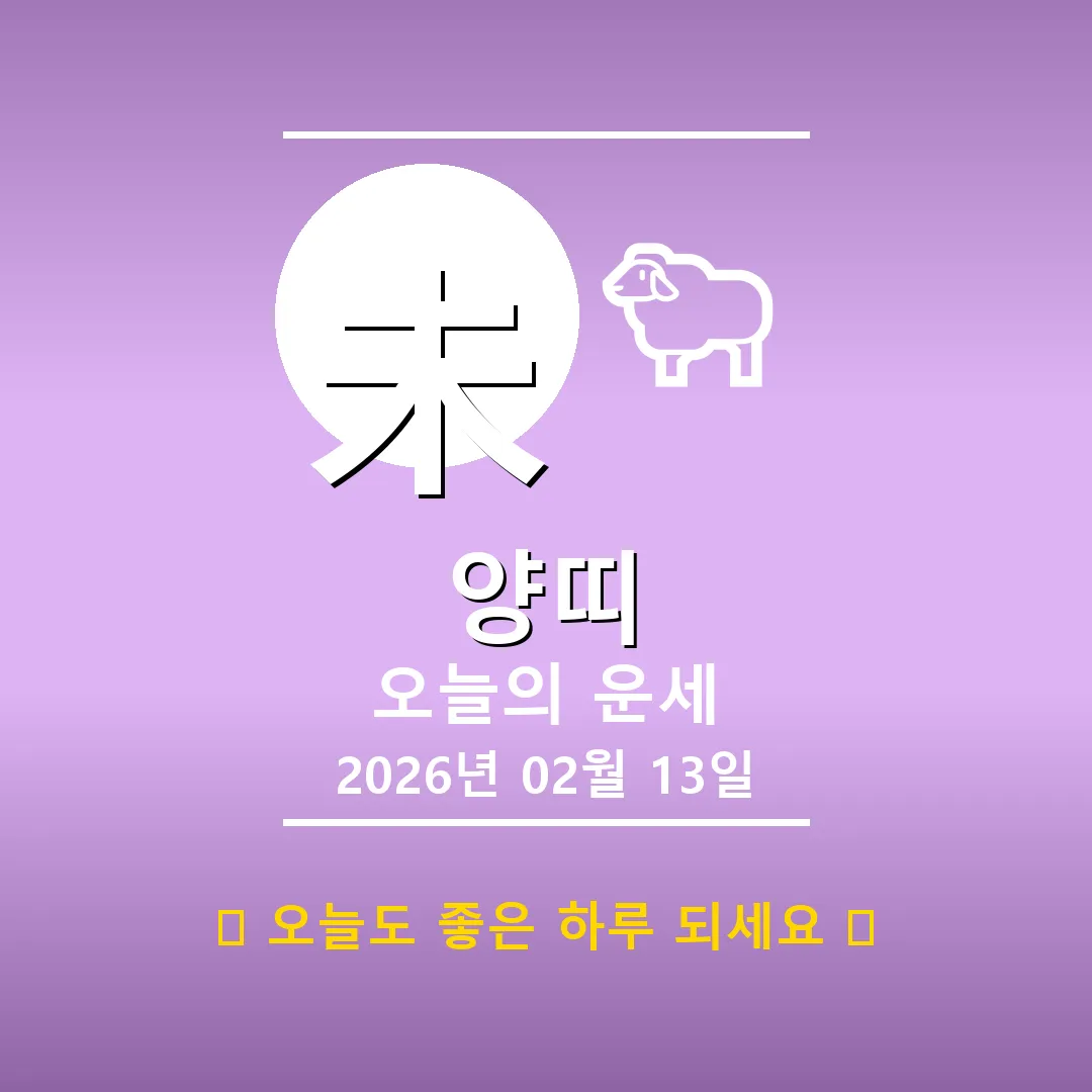 🐷 돼지띠 해당 연생 : 1911년, 1923년, 1935년, 1947년, 1959년, 1971년, 1983년, 1995년, 2007년, 2019년생 오늘 돼지띠 여러분, 2026년 2월 13일은 물(水)의 기운이 감도는 날입니다. 사주를 펼쳐보니 연주에 丁亥(정해), 월주에 壬寅(임인), 일주에 戊寅(무인), 시주에 戊午(무오)가 자리 잡고 있네요. 전체적으로 토(土)의 기운이 다소 강하고 금(金) 기운이 부족하니, 균형을 맞추는 노력이 필요하겠습니다. 오늘 하루, 긍정적인 마음으로 자신감을 … Read more